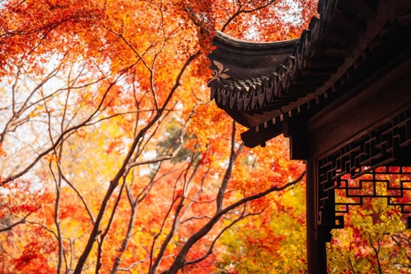 Red maples are at their peak in Qiuxia Garden. [Photo/jiading.gov.cn]